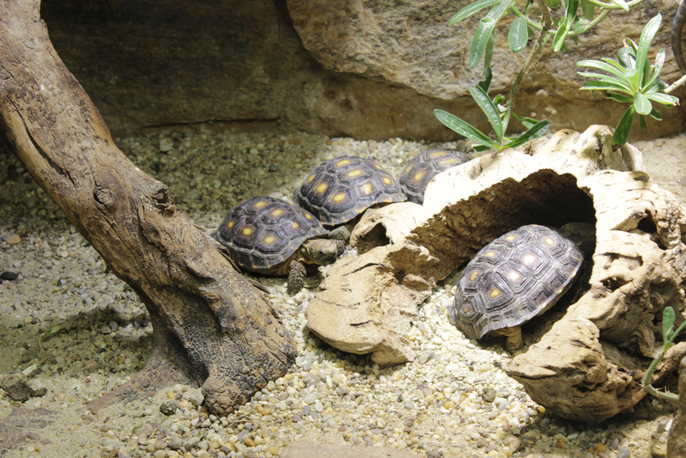В террариуме для сухопутных черепах обязательна хорошая вентиляция. Отверстия должны быть широкими и располагаться на противоположных стенках, но на разном уровне — внизу в холодном углу и вверху в теплом.