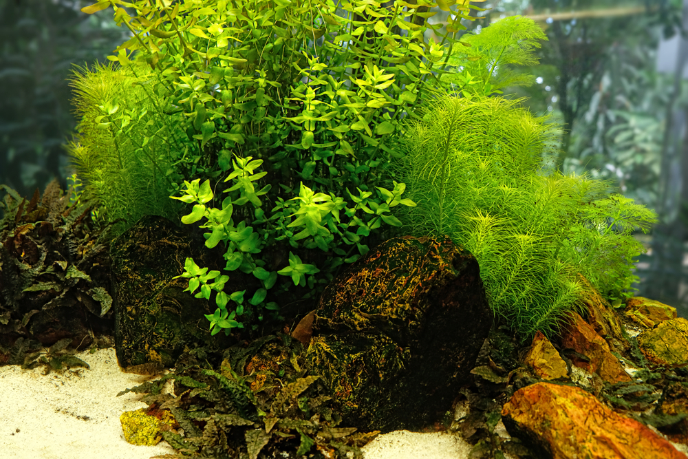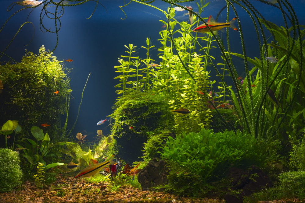 - Если в аквариуме планируются рыбы, то только не роющие грунт и не поедающие растения (неон, данио, тетра, тернеция и схожие с ними).