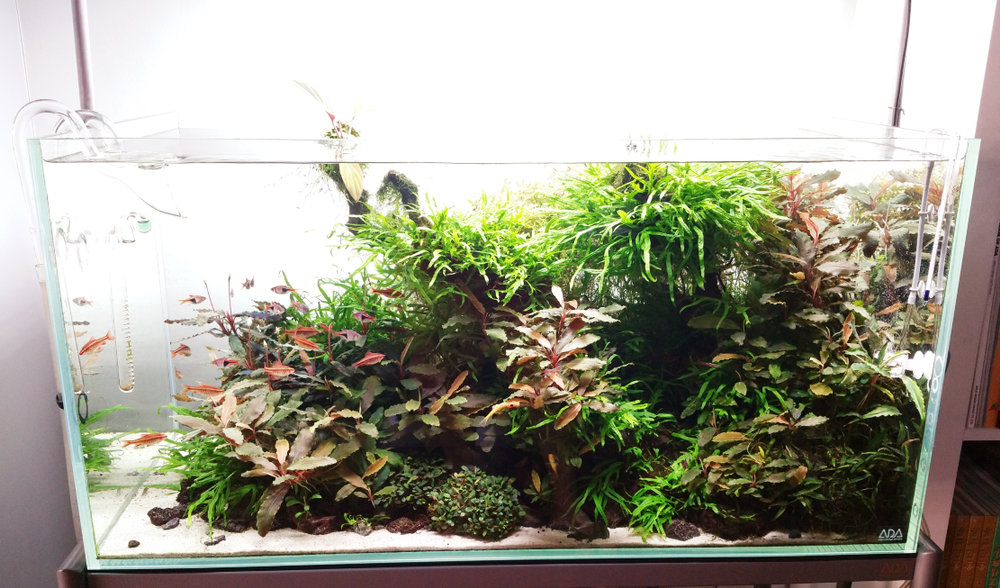 Ни в коем случае не должно быть симметрии, так как голландский аквариум будет выглядеть ненатурально. Яркие растения, на которые взгляд падает в первую очередь, должны быть смещены от центра.