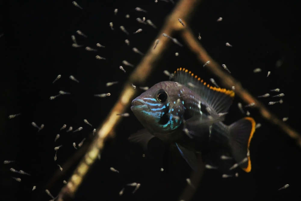 Нерестятся акары так же, как все цихлиды. Это может происходить и в нерестовике, и в общем аквариуме. [su_note note_color=»#fcf8e3″ text_color=»#010101″ radius=»20″ class=»su_my_warning»]Период размножения отличается агрессивным поведением рыб. [/su_note]Какие-либо дополнительные условия создавать необязательно. Половозрелость у рыб наступает примерно в год.