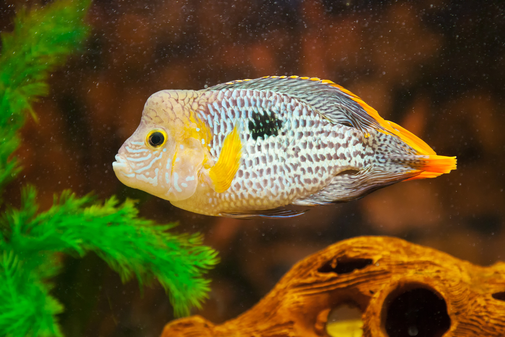 При хороших условиях содержания они довольно миролюбивы и спокойны. [su_note note_color=»#fcf8e3″ text_color=»#010101″ radius=»20″ class=»su_my_warning»]Основная причина агрессии данных рыб – это недостаточно просторный аквариум. Эти цихлиды в тесноте имеют склонность задирать и провоцировать других рыб на конфликт. [/su_note]Что удивительно, самки гораздо драчливее самцов, и особенно ярко это проявляется в период нереста, когда они буквально кидаются на всех и каждого. Во избежание драк в аквариуме лучше содержать только одну пару.