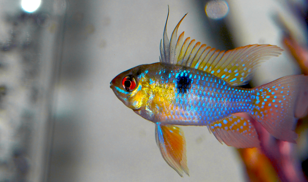 Заслуженно считается одной из самых красивых карликовых цихлид и не вырастает более 5 см.