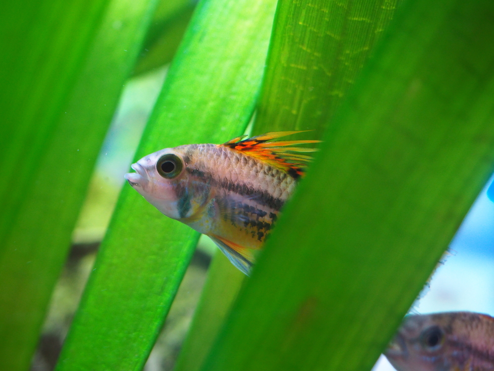 - Эта карликовая цихлида предпочитает тусклое, приглушенное освещение. Рассеять лучи света можно при помощи плавучих растений.