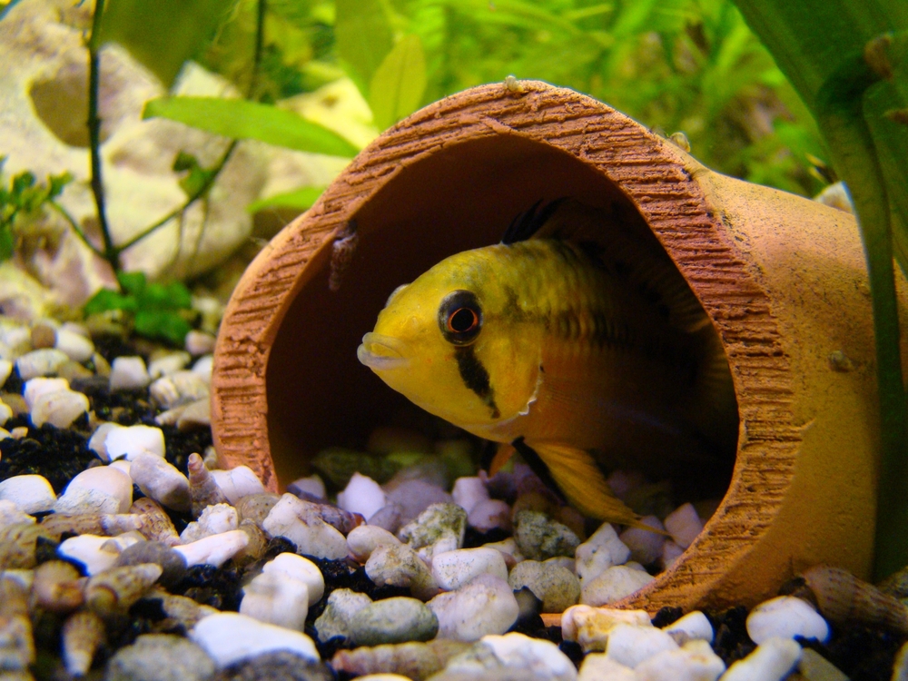 Субстратом внешней оболочки может быть также и обкатанный мелкий гравий. Изделию надо дать просохнуть в течение суток, а потом его следует уложить на дно аквариума, присыпав с боков грунтом. Рыбкам наверняка понравится такое интересное и безопасное укрытие!