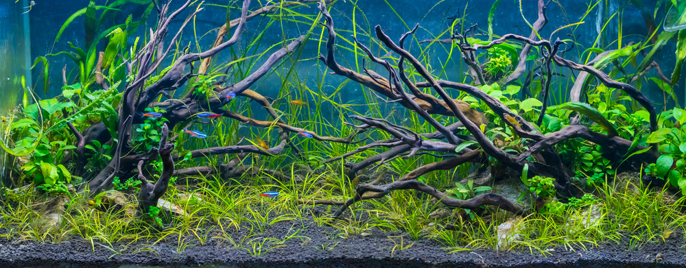 Они часто декорируются растениями: мхами, папоротниками, анубиасом. Чтобы прирастить растения к ним, обычно достаточно привязать их леской или закрепить пластиковым зажимом на несколько недель.