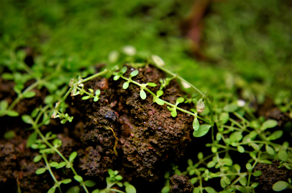 Это относительно новое растение, очень похожее на Хемиантус Куба, но имеющее перед ним ряд преимуществ. У Микрантемума более длинные корни, он крепко врастает в грунт и даже при толщине травяного коврика 10 см не всплывает на поверхность (Хемиантус же всплывает уже при 3-сантиметровой толщине).