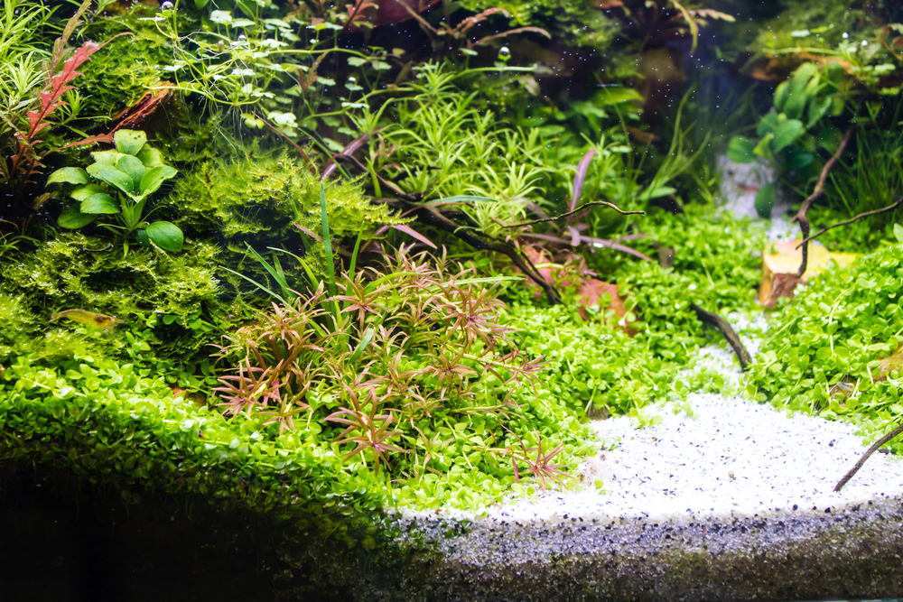 Кроме того, у Монте Карло чуть крупнее листья (диаметром до 3 мм), что позволяет обеспечить плавный переход к растениям с крупными листьями и делает общий вид аквариума более естественным и природным. Располагать лучше на переднем плане.