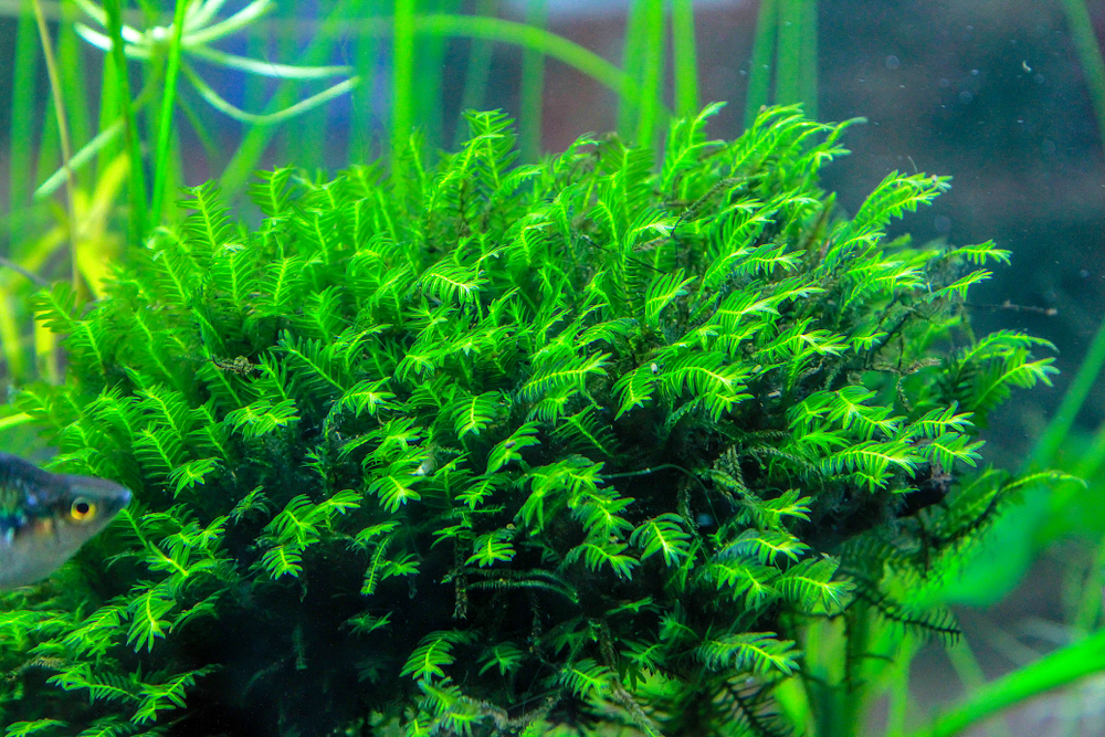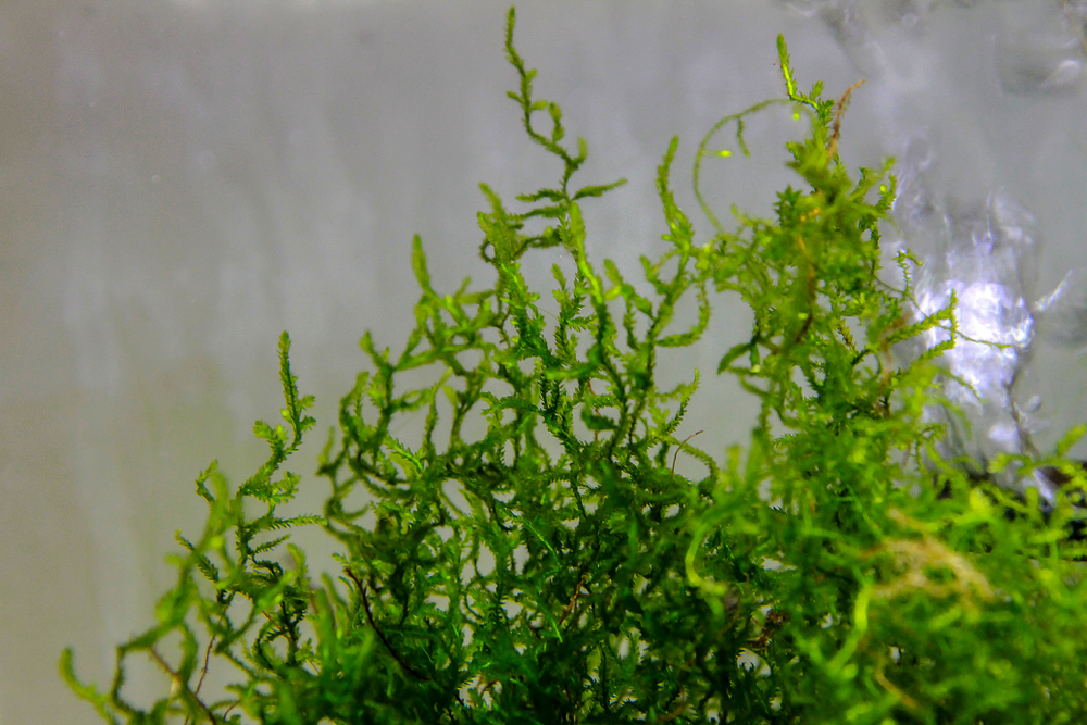 Якорный мох (Anchor Moss). Относится к роду Taxiphyllum. Растет медленно, образуя пышные кусты. Как и прочие представители этого рода, к субстрату не прирастает. Условия, которые потребуется создать: освещенность любая, температура – 15-27 градусов, кислотность – от 5 до 8. Хорошо реагирует на добавку СО2.