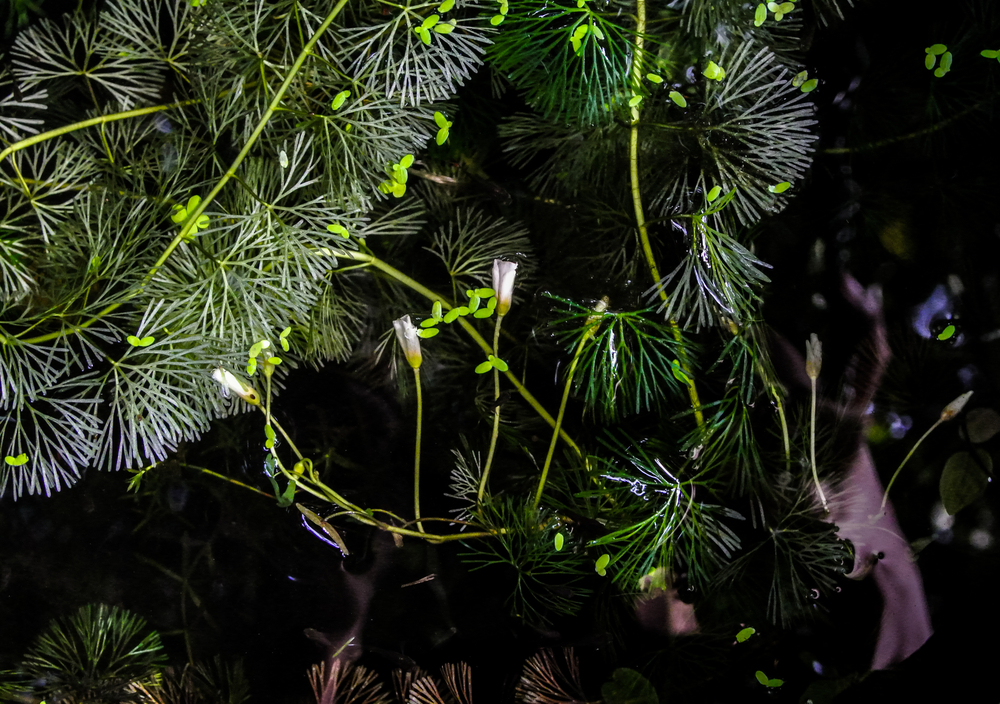 Для заполнения промежутков на заднем фоне аквариума можно применять роголистник и элодею, собранные в пучки по несколько веточек и прижатые ко дну. Пышных зарослей они образовать не смогут, так как не укореняются и не кустятся, но добавить густоты и фактуры — вполне. К параметрам воды они нетребовательны, переносят почти любую жёсткость и кислотность. Правда, в совсем мягкой воде у роголистника ломается стебель, и образовавшиеся черенки расплываются в разные стороны. Освещение любят среднее или хорошее. Элодея лучше растёт в прохладной воде, до 23°С.