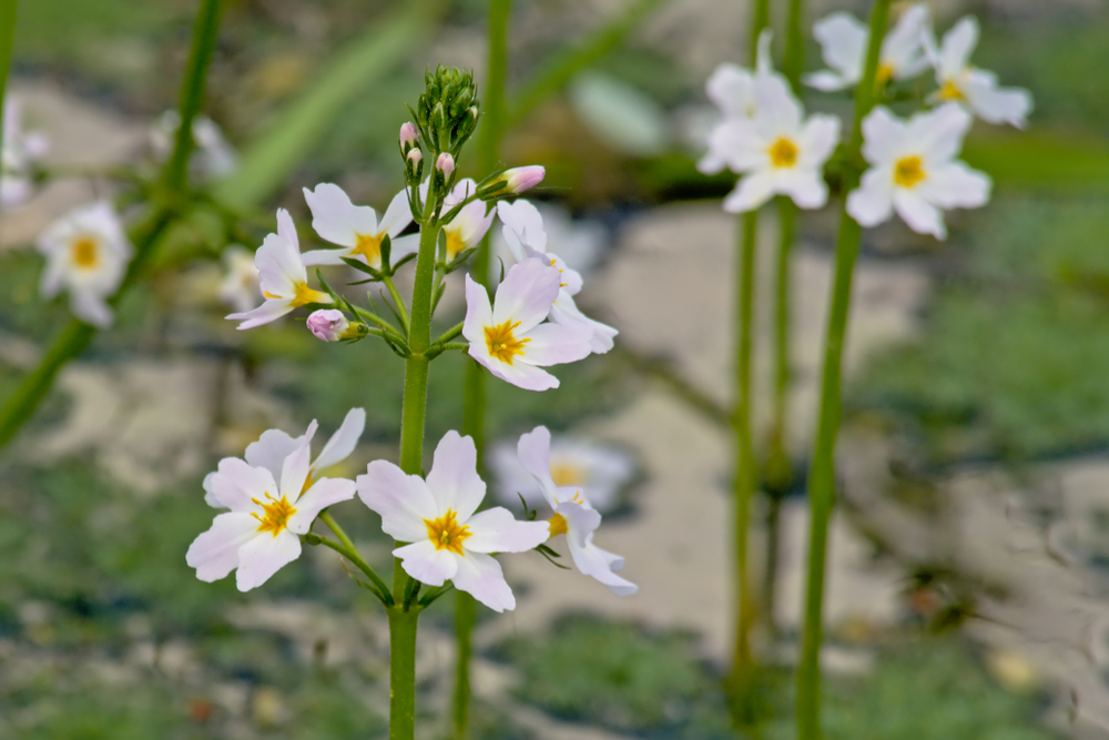 Хоттония интересна тем, что в период с мая по июль она может цвести. Красивые белые цветки, расположенные группой, возвышаются над водой на длинных цветоножках, которые вырастают из пазух листьев.