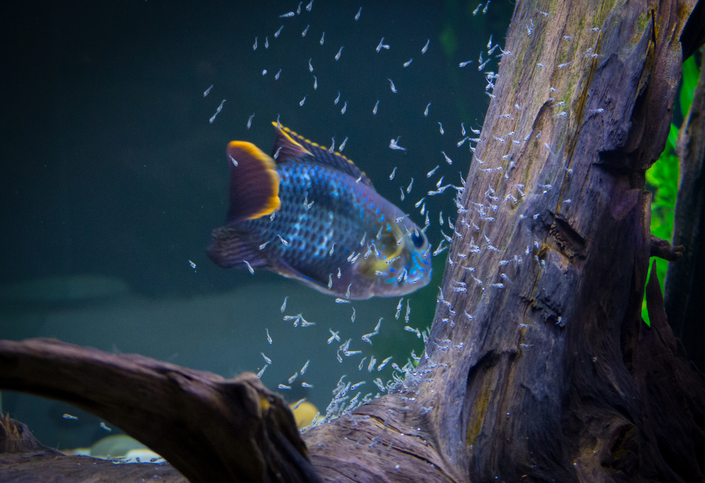 Постепенно родительские инстинкты взрослых рыб начинают слабеть, и как только молодь достигнет длины в 1,5 сантиметра, ее лучше отсадить, поскольку в этом случае юные рыбки сами рискуют стать обедом для взрослых акар.