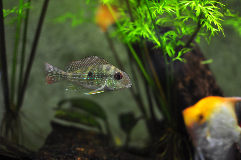 Кормление. Красноголовые геофагусы всеядны: охотно поедают и растительный, и животный корма. Предпочитают кормиться с грунта. Им можно давать тонущий живой, замороженный и сухой корм, фарш из креветок и мидий, вареную тыкву и салат. Основное требование – это разнообразие пищи с преобладанием растительной. Его выполнение снижает риск заболеть гексамитозом (очень распространенный среди этих рыб недуг).