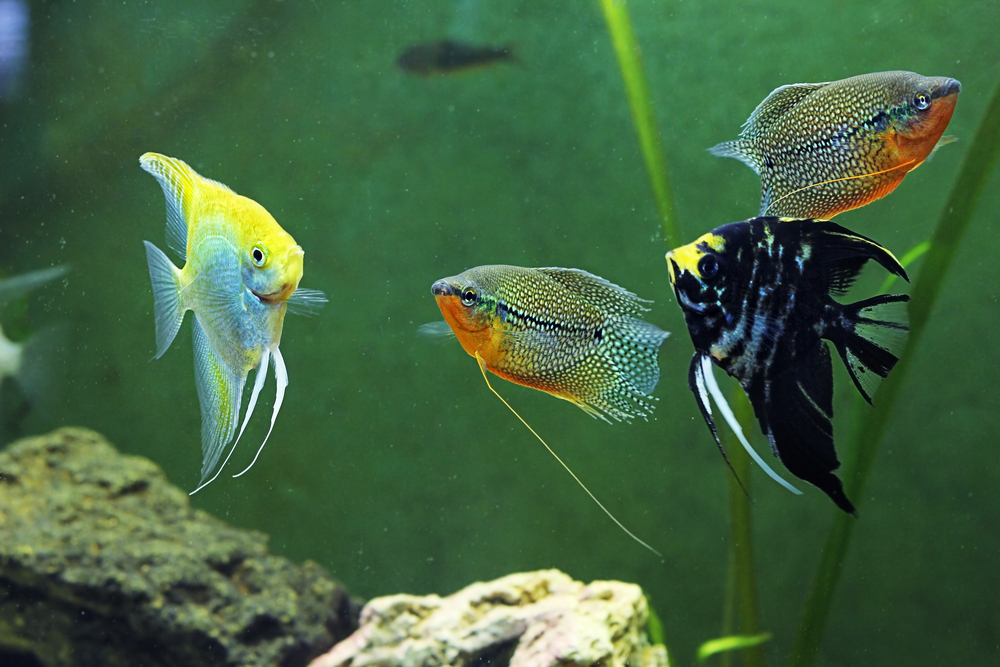 Также плохо совместимы с гурами креветки и мелкие улитки, так как эти рыбки во время голода могут нападать на беспозвоночных. Но в этом есть и свои плюсы – устраивая гурами голодовку, можно взять под контроль численность улиток-вредителей.