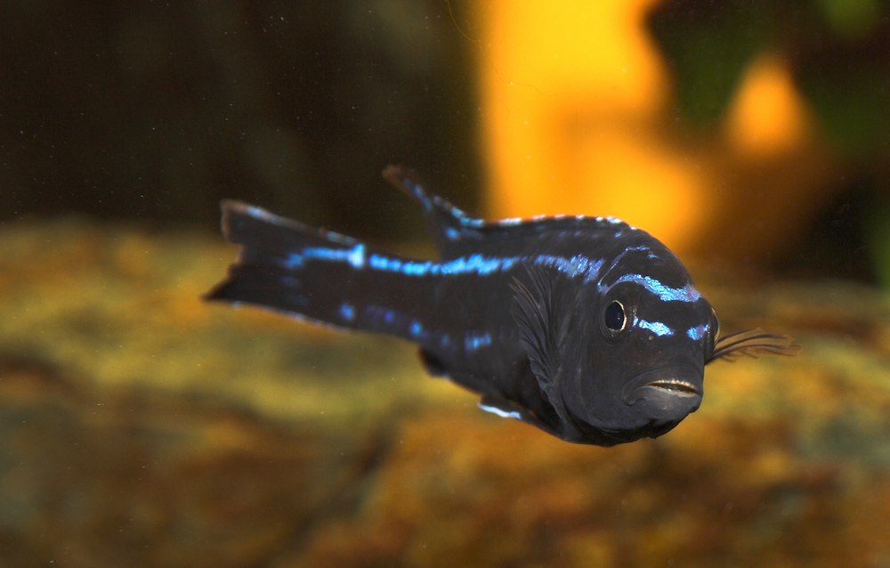 Меланохромис майнгано — замечательная по своей красоте декоративная экзотическая рыбка. Вечером, при умеренном освещении, вы сможете прекрасно расслабиться и отдохнуть, с интересом наблюдая за стайкой этих небольших синих цихлид родом из далекого африканского озера Малави.