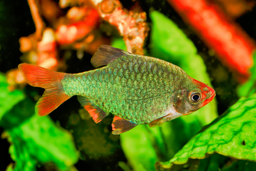 Барбусы любят лакомиться растениями, поэтому в аквариуме нужно размещать много зелени, а одну из стен можно не отчищать от водорослей.