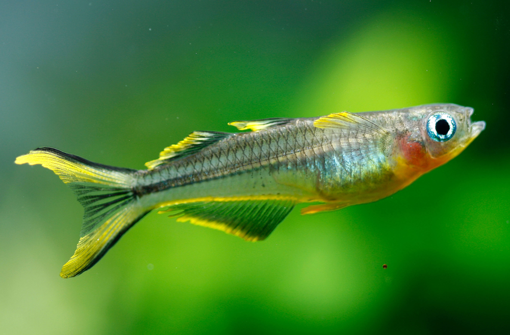 За ее непрерывным движением всегда интересно наблюдать. Яркая, стремительная, миролюбивая, красивая — она как будто раскрашивает аквариум теплыми цветами радуги. Речь о маленькой симпатичной рыбке с синими глазами, именуемой попондеттой фуркатой.
