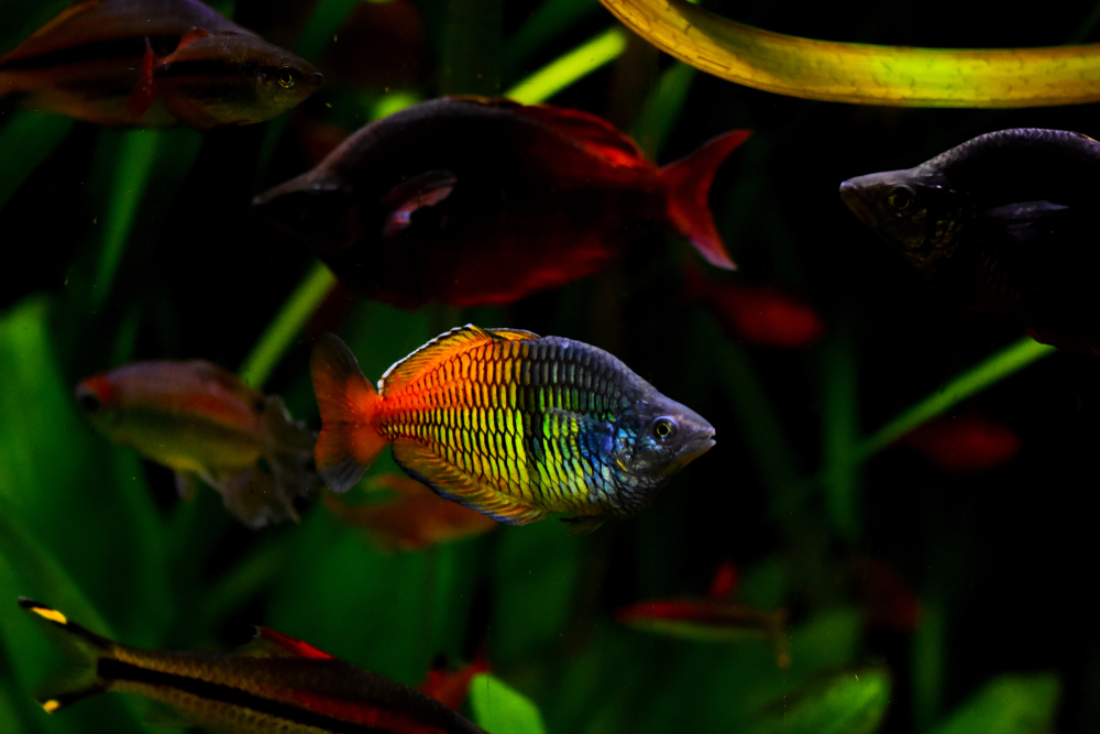 Радужницы не любят одиночество, поэтому предпочтительно держать их стайками по 6-10 рыбешек.
