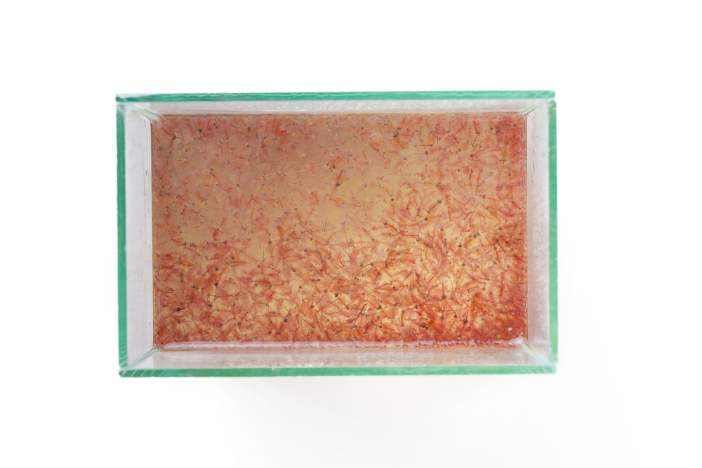 - В процессе декапсуляции яйца начинают менять свой цвет с серого на оранжевый цвет. Как только они станут ярко-оранжевыми и большая их часть начнет оседать на дно, то декапсуляцию можно считать оконченной.