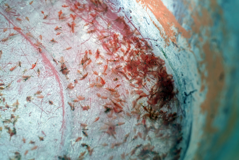 Самый удобный способ – приманить артемий светом и выловить их сачком. Для этого нужно выключить фильтр, остановив циркуляцию воды, чтобы в толще остались лишь рачки, а цисты опустились на дно.