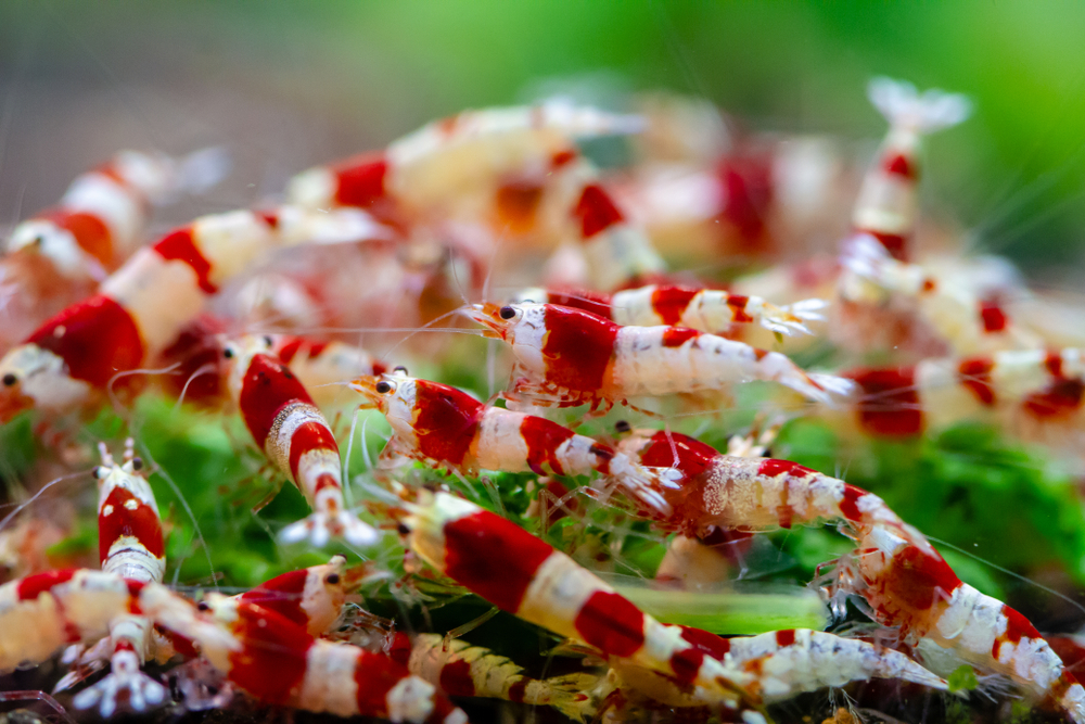 Но многие организмы подвержены интересным цветовым мутациям, и креветки – не исключение. У одной особи появились яркие красные полосы, которые заметил предприимчивый японец Хисаяши Сузуки. Благодаря работе талантливого селекционера была получена и представлена миру изумительная линия красно-белых крохотных аквариумных креветок.