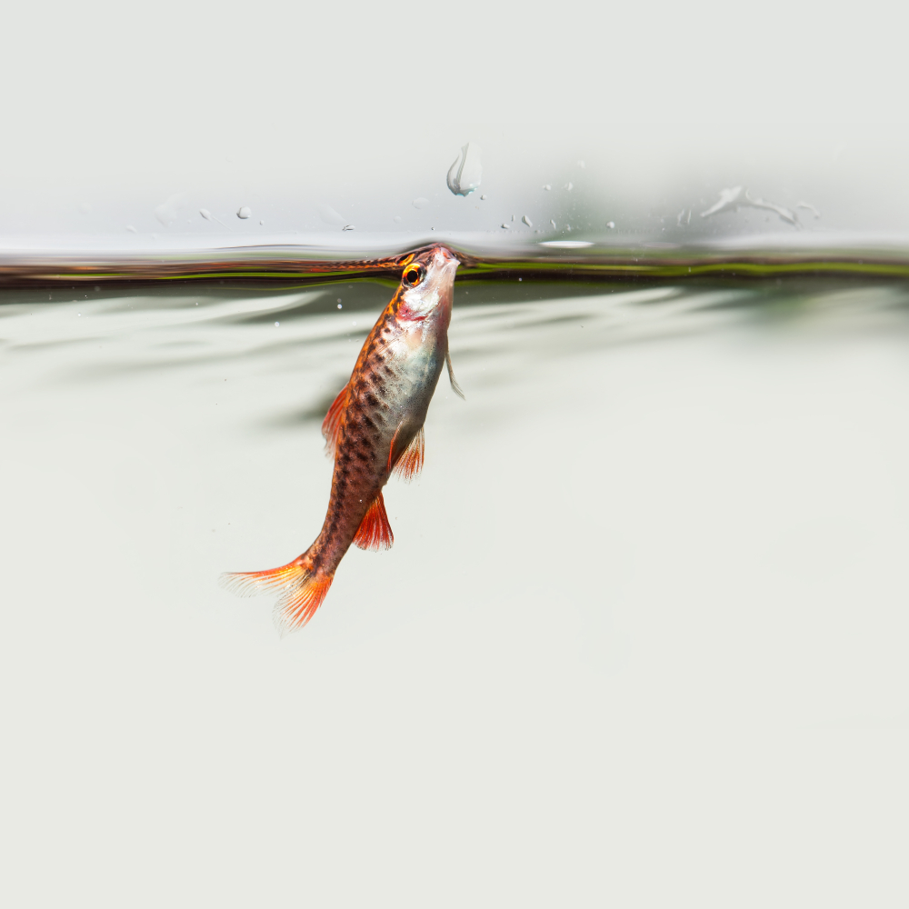 Затем рыбкам приходится подниматься к поверхности воды, а глотательные движения становятся все интенсивнее. В совсем критичных ситуациях рыбы постоянно находятся у самой поверхности, быстро заглатывая воздух ртом.