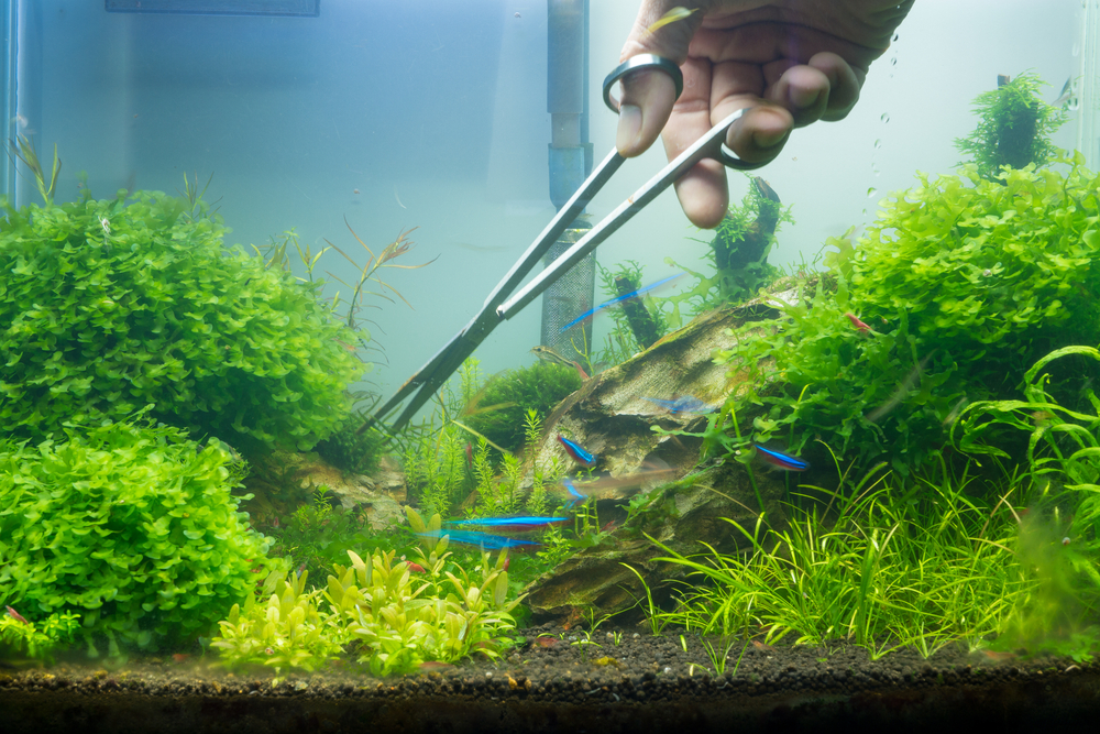 - если в аквариуме есть растения, проводим их прополку и подрезку;