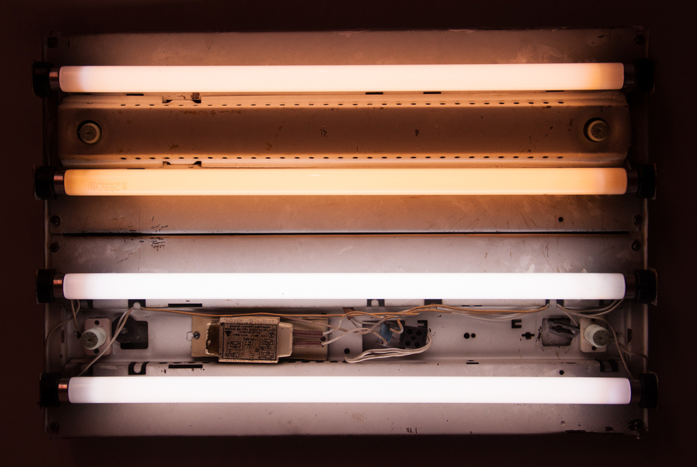 Вещество люминофор на основе кристаллофосфоров преобразует УФ-излучение в видимый свет. Такой осветительный прибор обладает высоким индексом светопередачи (показатель Ra) и создаёт рассеянный ровный свет, идеально подходящий как для освещения больших помещений, так и малых.