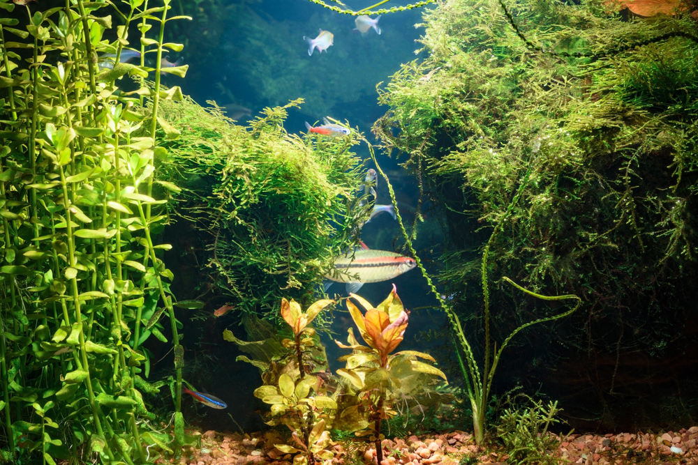 Роголистник активно поглощает из воды органику, составляя конкуренцию микроскопическим водорослям.