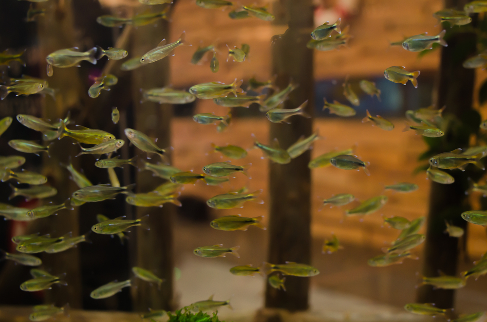 - Несмотря на сравнительно небольшие размеры (взрослая особь 2-5 см) рыбок, они нуждаются в большом количестве свободного места для плавания. Для стайки из 10-20 особей понадобится аквариум от 50-70 л.