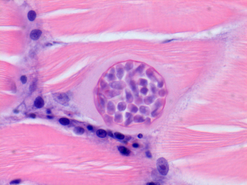 Циста со спорами в мышечной ткани.