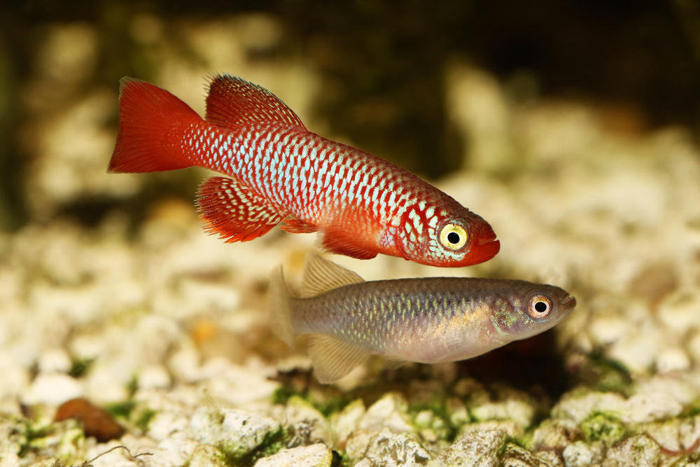 Нотобранхиусы отличаются непростым характером: как правило, между самцами возникают очень сложные отношения. Поэтому лучше всего содержать их в небольших видовых аквариумах гнездами, где на одного самца приходится 2-3 самочки.