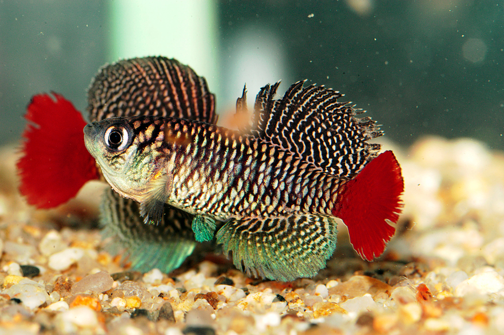 • Половой диморфизм выражен ярко, особой красотой отличаются самцы. Самки окрашены беднее, не имеют пышных и красивых плавников.