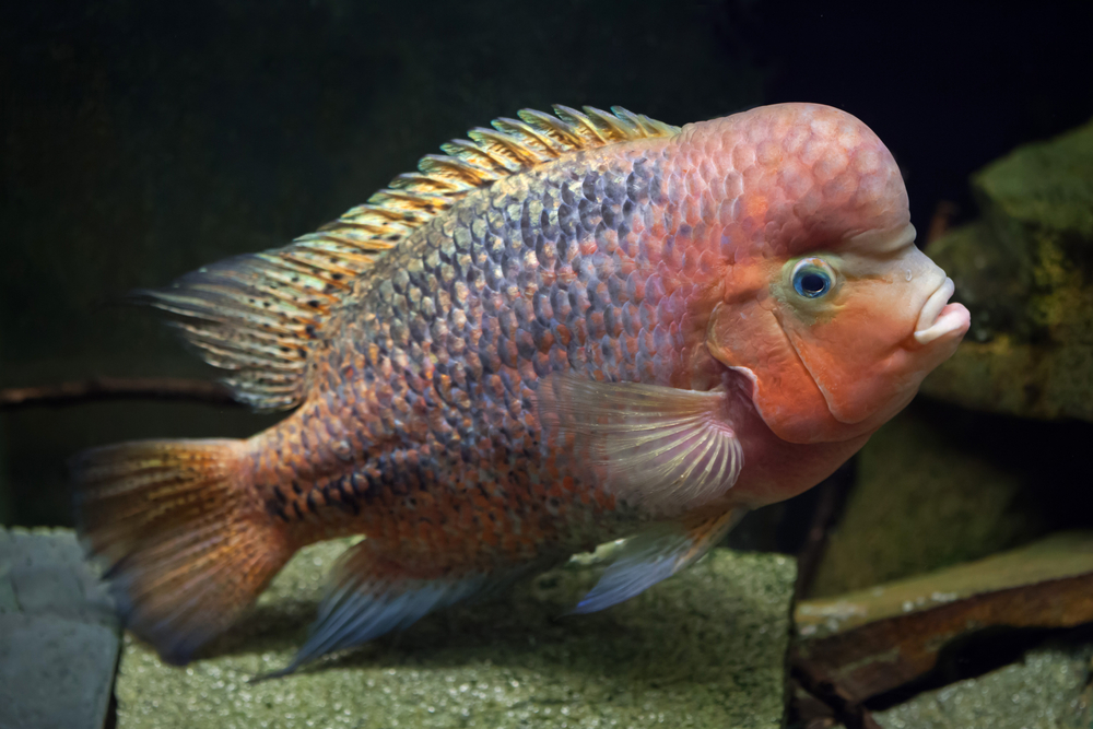 - Красноголовая цихлазома не относится бережно к инвентарю и растительности. Все оборудование должно быть плотно закреплено, а растения подойдут только жестколистные и посаженные в горшок, иначе рыба их выдернет и съест.