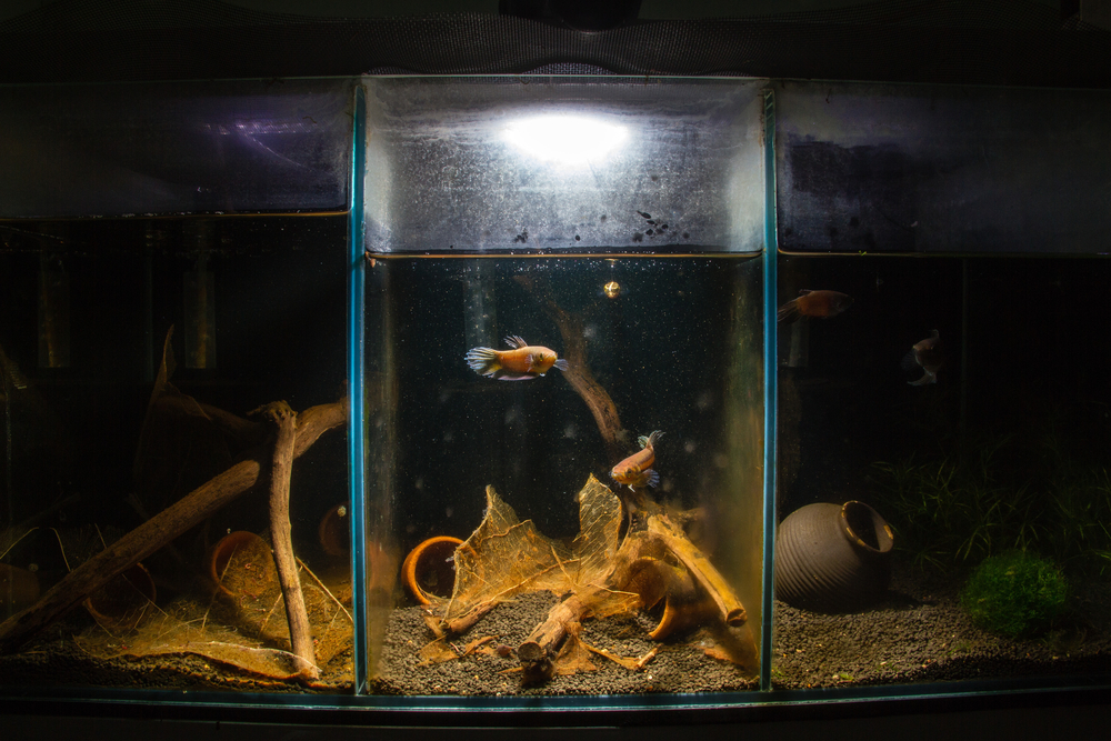 - Добавьте в аквариум растения таким образом, чтобы они зонировали территорию. Различные пещерки из камней тоже будут хорошими укрытиями.