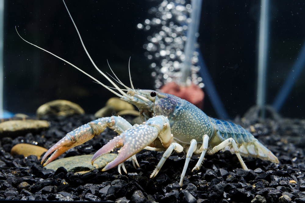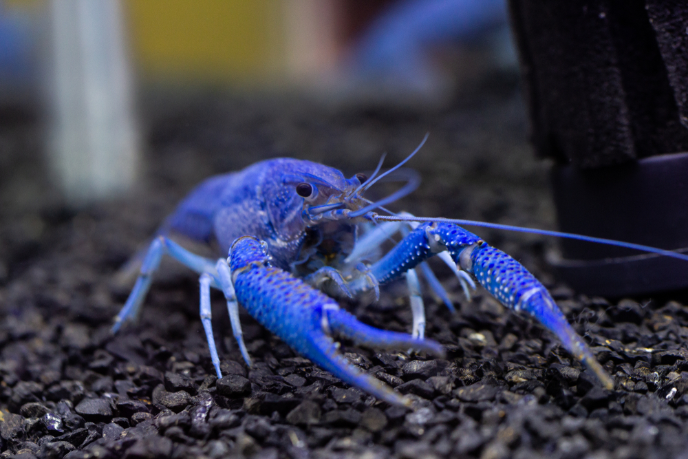 Понятно из названия, что в природе он живет в прудах, озерах, болотах Флориды. Натуральный окрас – невзрачный коричневый, а яркий синий колер выведен селекционно. Длина панциря не превышает 10 см, а значит для пары таких раков будет достаточно 100-литровой посудины. Оптимальная температура воды 18-28 градусов, жесткость — 6,5-8. Требуется еженедельная подмена половины объема воды. Самцы между собой не уживаются. Неплохое соседство может получиться с крупными спокойными рыбами.