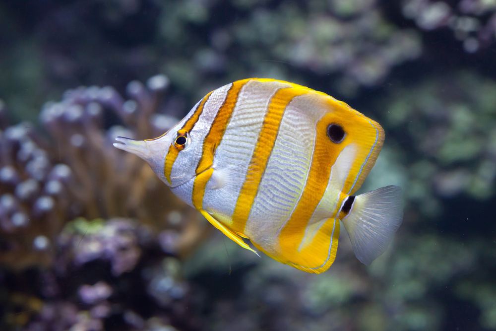 Бабочка-пинцет (лат. Chelmon Rostratus, англ. Copperband Butterflyfish)