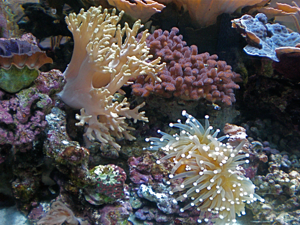 - Смешанные, в которых рыбки соседствуют с беспозвоночными (морская звезда, актиния, креветка), мягкими кораллами, некоторыми кишечнополостными и живыми камнями. Такие водоемы более интересны, но у них есть свои недостатки: проблематично совместить рыб и беспозвоночных, требуется более яркое и долгое освещение, что способствует быстрому образованию налета, сложно проводить лечение рыб из-за токсичности лекарств для беспозвоночных и прочее.